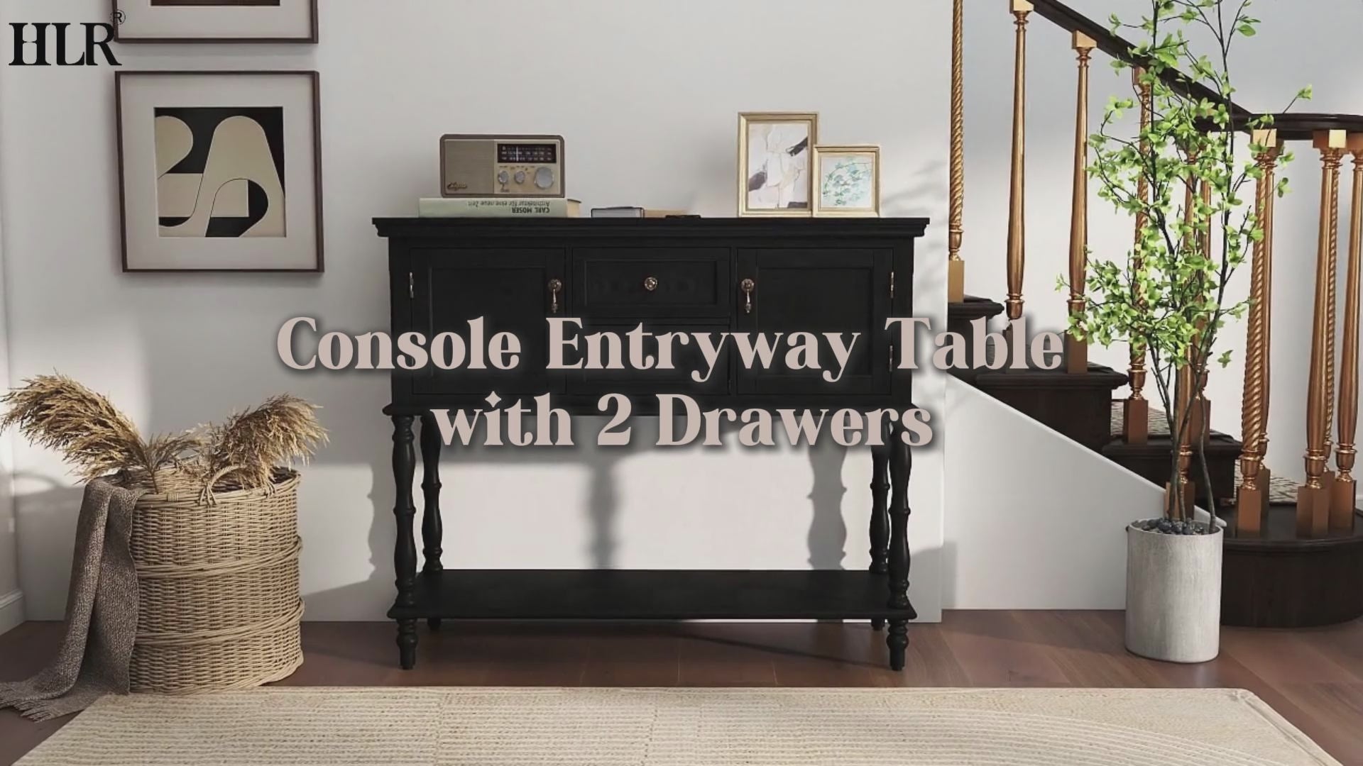 【2 drawers & 2 Door Storage Cabinets】This entry table comes with 2 spacious drawers and 2 door storage cabinets, providing ample storage space for your belongings. And the bottom shelf is perfect for placing storage baskets or taller display items as additional storage. Flower bouquets, scented candles, photos, books or other items, everything has the right place to be displayed.